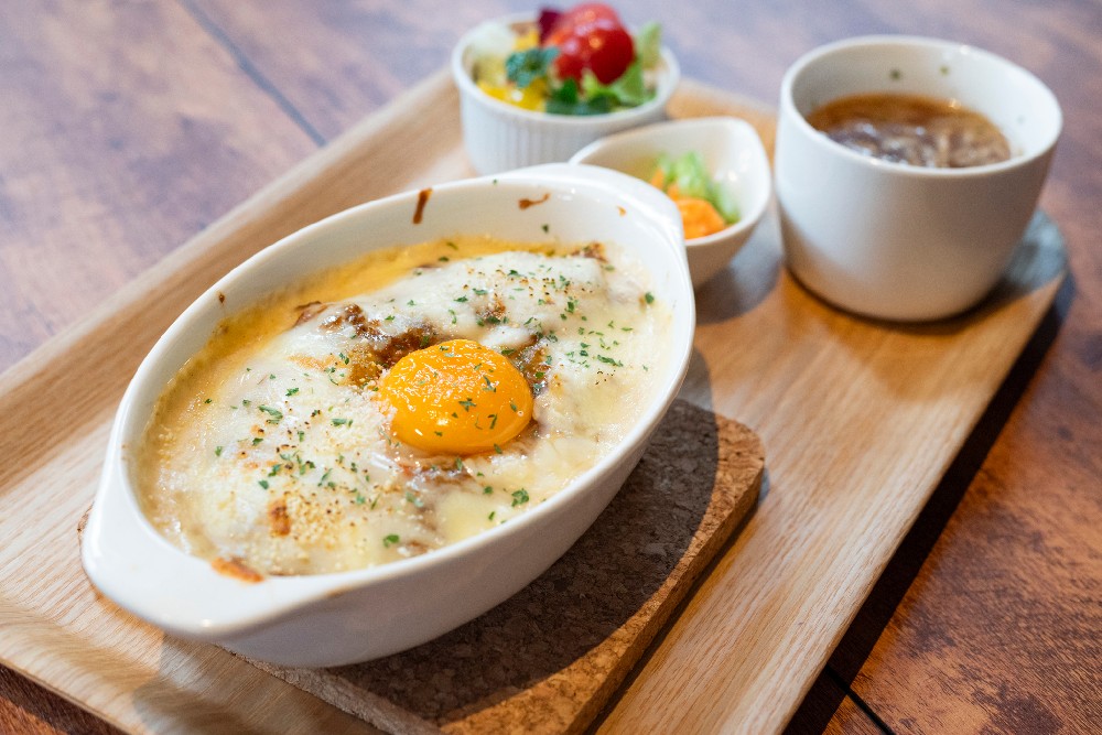 自家製バターチキンカレー、キーマカレードリア、ふわとろのオムライスの中から選べます。