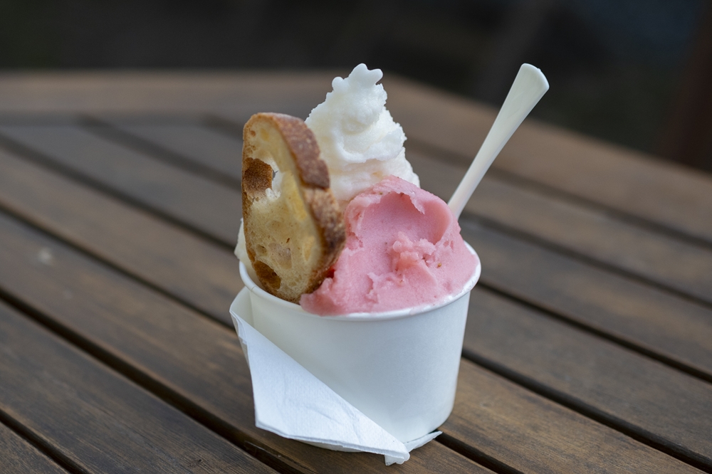 珊瑚さんはイタリアまでジェラートを学びに行った経験があり、その時に出会ったブリオッシュ・コン・ジェラート(ブリオッシュという種類のパンでジェラートをサンドした、シチリア発祥の食べ方)に感激。