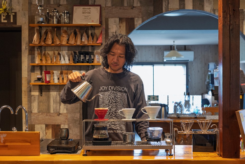 勇太さんは東京でバンド活動をしていましたが、2019年に帰郷。勇太さんを含め、父の背中を見て育った三兄弟は自然にコーヒーを淹れられるようになり、カフェスペースで接客も行っています。「父が先生で、自然に身につきました」と笑う姿から、家族経営ならではのあたたかさが伝わってきます。
