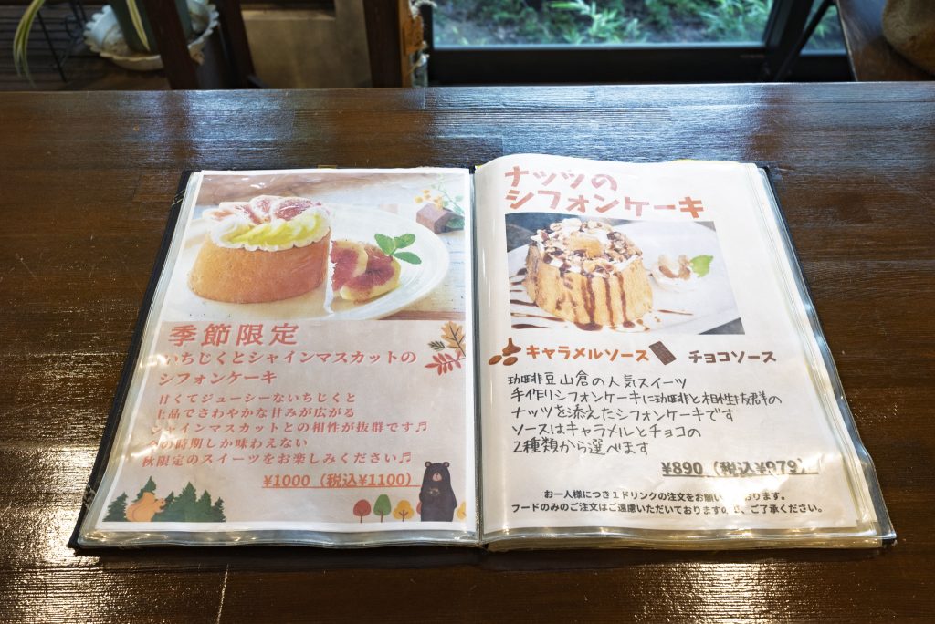 メニュー表にはそれぞれのコーヒーの特徴が記載されているので、コーヒーが詳しくない方でも安心して自分好みの一杯を選ぶことができます。また、コーヒーにぴったりの季節のフルーツを使った限定スイーツもご用意。ちょっと贅沢なカフェ時間が叶っちゃいます。