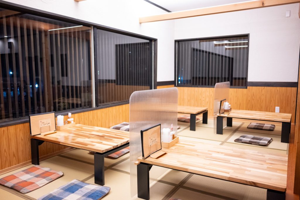 店内は、カウンター席、テーブル席、小上がりのお座敷の席があります。小さなお子さま連れや高齢の方も多いため、お座敷の小上がりの段差は低く、床にはクッション材を使用。おひとり様から家族連れまで誰でも安心して過ごすことができますよ。