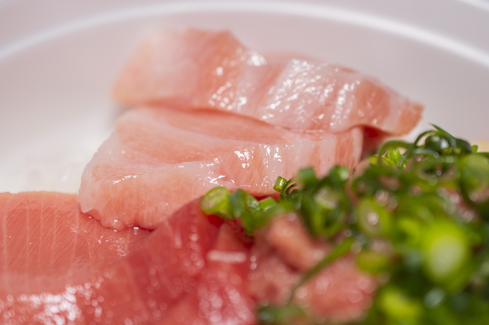 1本ものを丸ごと仕入れているためさまざまな部位を提供でき、丼1杯に大トロ、中トロ、赤身、ネギトロの4種がたっぷり載っています。