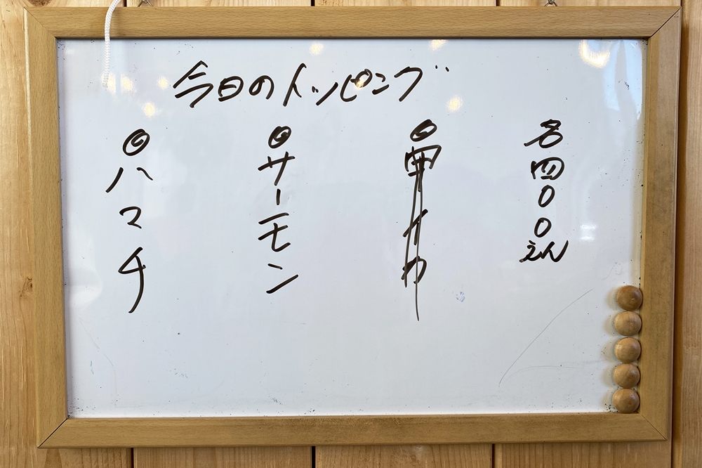 さらに、日によってトッピングとして他のネタ(各400円)を追加することもできるので、自分なりの楽しみ方ができるのもうれしいですね。