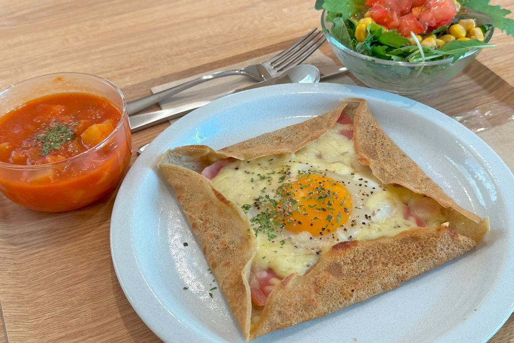 人気メニューは、香ばしく焼き上げたガレットと、スパイスの香りが食欲をそそるキーマカレー。